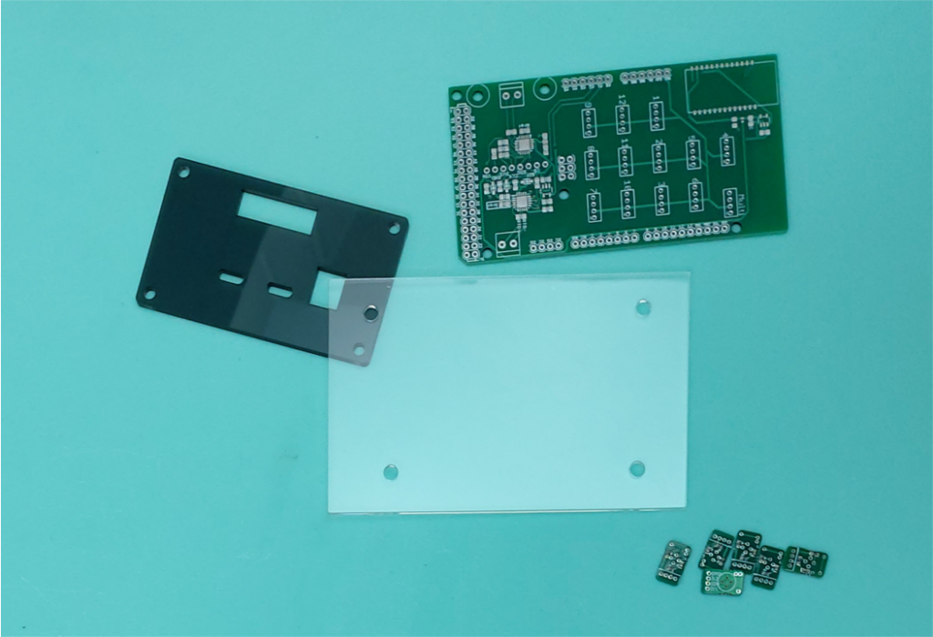 我们赠送上图所示的空亚克力板和电路板(一个shield电路板和六个探头电路板),其中探头电路板已经贴上了必要的电容和上拉电阻。您可以加QQ 36661661,告知收货地址并付邮费,即可获赠图上的器件。